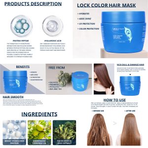 - Infused with Hyaluronic Acid, this deep conditioning hair mask works wonders to maintain your hair colour’s brilliance. Specially crafted to preserve rich, vibrant colour, it locks in moisture, preventing the dullness that often occurs post-treatment. Embrace the confidence of captivating, long-lasting colour with hair that feels as good as it looks, supporting your style with stunning shine and unbeatable resilience.