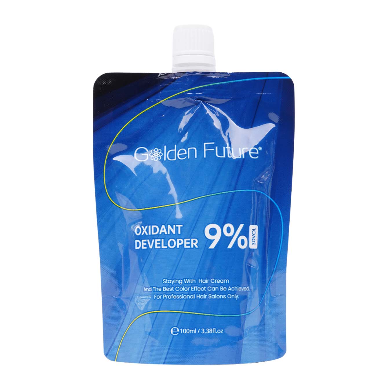 Golden Future Oxidant Developer %9 ( 30 Vol ) is formulated to provide the ideal consistency for easy mixing with your favorite hair colour cream . This advanced developer ensures vibrant, precise, and long-lasting colour results, making it perfect for a wide range of salon services or at home application. its gentle yet effective formula allows for smooth application , All while helping maintain hair’s natural shine Now available in a convenient 100ML pouch designed for professional-quality results.